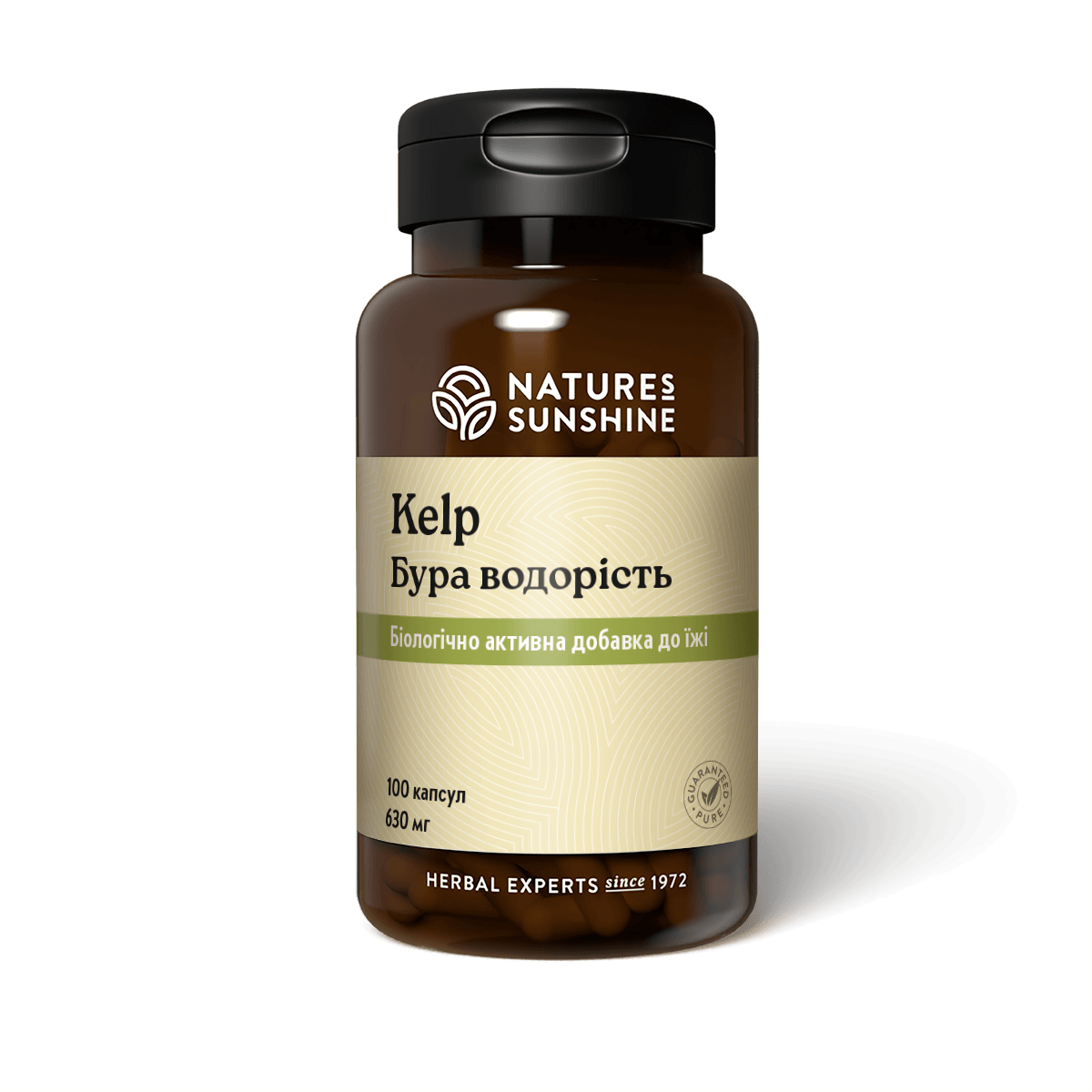 Природний йод бурих водоростей у складі Келпа компенсує нестачу цього елемента обсягом добової потреби. Келп впливає на скорочувальну здатність серцевого м’яза, запобігає розвитку рахіту, остеопорозу, карієсу, ламкості нігтів, волосся. Має загальнозміцнювальну дію. Келп можна призначати при захворюваннях, зумовлених дефіцитом йоду, захворюваннях щитоподібної залози, атеросклерозі, ішемічній хворобі серця.