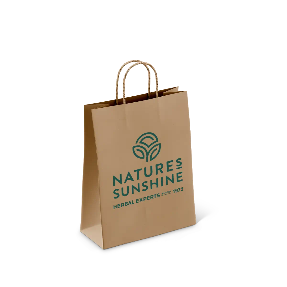 Брендований крафтовий пакет з логотипом Nature’s Sunhine та слоганом Herbal Experts since 1972.