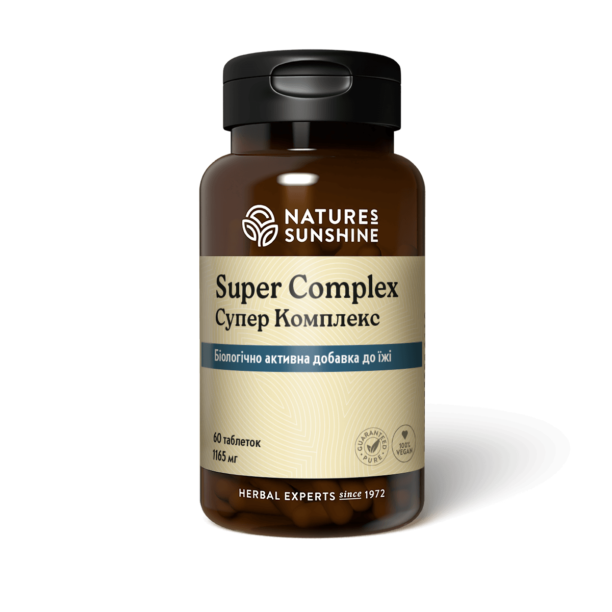 Серед незамінних чинників харчування найбільш важливими є вітаміни та біоелементи, дефіцит яких за нинішнього характеру харчування неминучий у сучасної людини й не залежить від сезону. Тому дієтологи рекомендують приймати вітамінно-мінеральні комплекси (ВМК) постійно впродовж усього року. Універсальний ВМК «Супер Комплекс» містить 12 вітамінів і 12 найважливіших біоелементів у легкозасвоюваній формі, необхідних для нормальної роботи всього організму в ефективних дозах. Комплекс посилений запатентованою сумішшю із 7 фітоінгредієнтів, гесперидину та флавоноїдів апельсина та грейпфрута.